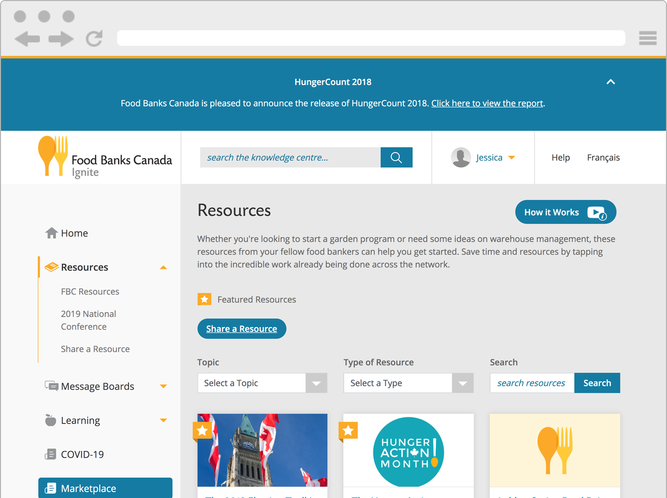 Ignite is an online knowledge exchange community project created by Food Banks Canada. Through functions like Message Boards, News, Resources and Learning Opportunities, this tool aims to cultivate a new level of connectivity across the network. Ignite creates the opportunity for you to connect with your fellow food banking colleagues to share your ideas and best practices as well as ask your questions.